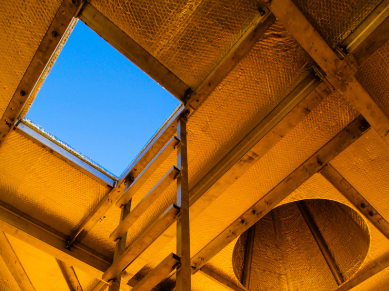 A quilted foil insulation layer forms the ceiling of the chamber, which is designed to maintain a comfortable temperature during day and night.