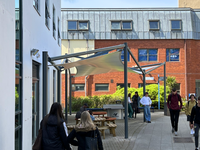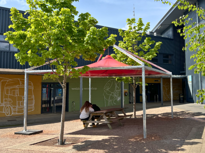 J & J Carter were contracted to build a number of canopies in a range of styles to provide protection from the weather across the college campuses. In some locations, the college selected our pre-engineered products, and in others we designed customised structures to meet specific needs, such the covering of a tight space outside the St David’s Study Centre.