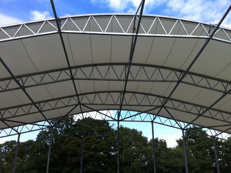 The fabric used was a Type 2 900gsm PVC Coated Polyester in conjunction with our EasyGlide Keder. The roof system has a ten-year warranty and life expectancy of 20 years; subject to periodic maintenance and cleaning.