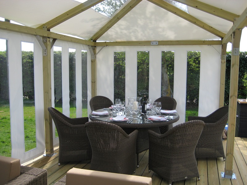 Each garden gazebo in this range can be combined with a variety of lights, heating, coloured canopy and side options to create a perfect outdoor space for a garden, patio or hot tub area. The canopies and screens are available in a range of different colours and textures. They have been designed to be waterproof and withstand the very worst the British weather can throw at them.