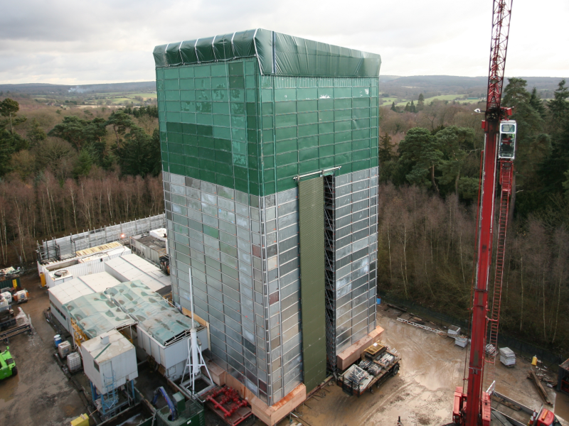 Tone Scaffolding required a PVC cover for noise containment for the gas drilling facility owned by Star Energy. J & J Carter created a PVC keder roofing system to cover the roof of the 37m high Layher scaffolding structure.