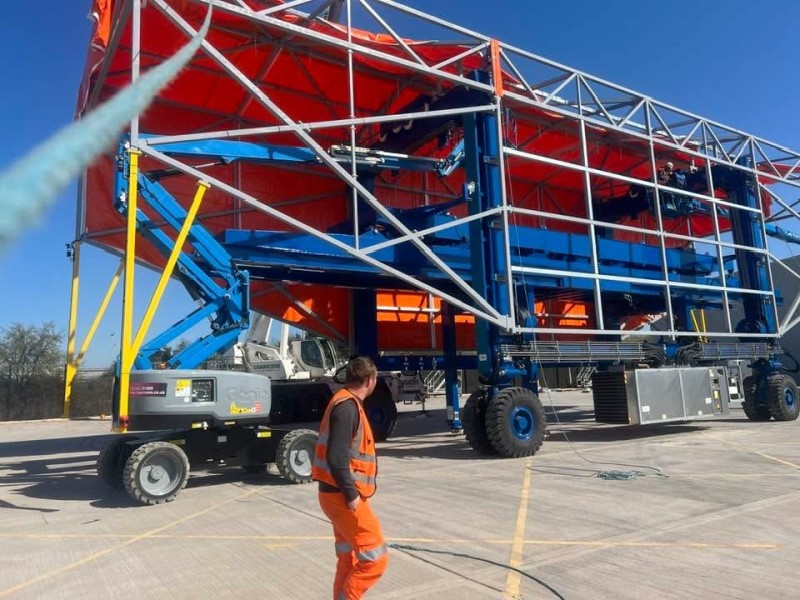 Artura took the lead in both the design and engineering aspects of the project, creating a meticulously crafted steel supporting frame that was expertly manufactured by SH Structures located in Leeds. In parallel, J & J Carter undertook the task of producing an impressive PVC cover designed to shield and protect the structure. They selected a high-quality 900gsm Panama PVC material in a vibrant orange color, ensuring not only durability but also high visibility.