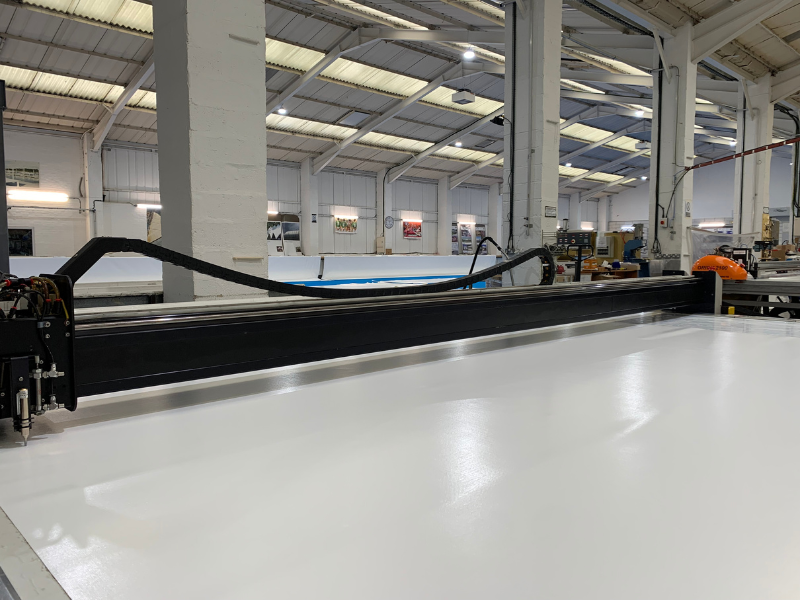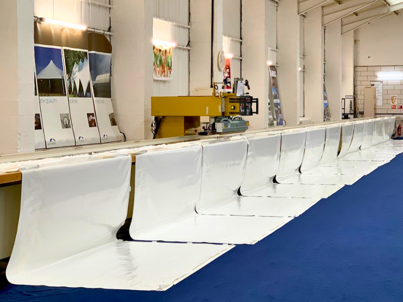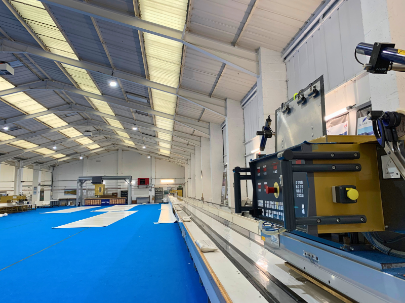 Additionally, we employ a CNC plotter cutting system with a 13m x 3m flatbed for precision, various industrial sewing machines, including semi-automatic options and hydraulic presses for fitting eyelets, rings and fixtures. To enhance efficiency, we also operate two automated Keder production lines dedicated to both in-house and external customer Keder demand.