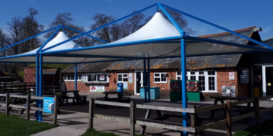 A local farm park in Andover, Finkley Down Farm, asked J & J Carter to construct a tensile fabric canopy to help their guests safely social distance. We installed two savannah fabric canopies for the farm, giving visitors a safe, covered dining or rest area that can be used all year round.