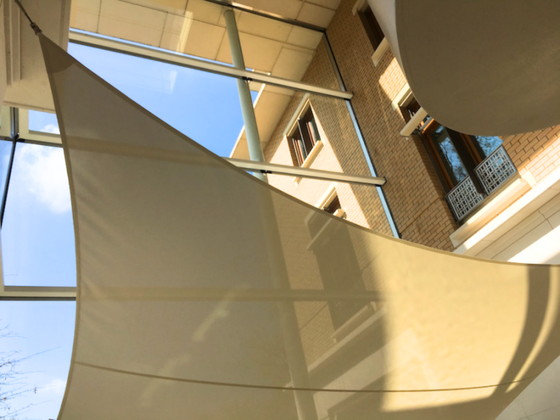 In summary, PVC-glass is a versatile material in tensile fabric architecture that combines the transparency of glass with the durability and flexibility of PVC. It's exceptional transparency, durability, resistance to environmental factors, and design versatility make it a valuable choice for creating visually stunning and functional tensile fabric structures. Whether used for canopies, roofs, or facades, PVC glass contributes to the creation of captivating architectural designs that harmonise with their surroundings while embracing the benefits of natural light.