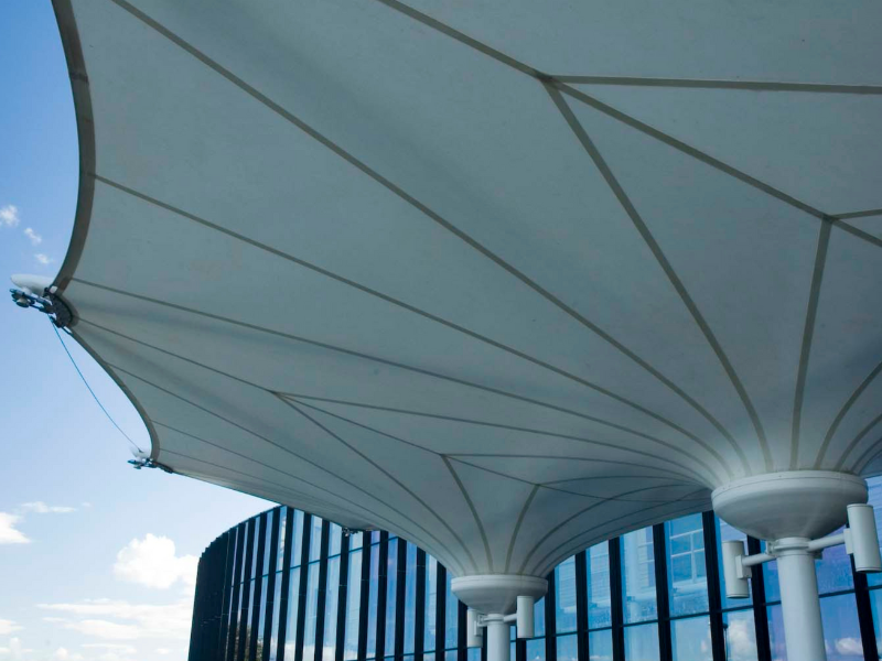 Silicone glass is a remarkable material in tensile fabric architecture, combining the strength of fibreglass with the heat resistance and transparency of silicone. Its thermal performance, transparency, durability, flexibility, and aesthetic options make it an ideal choice for creating functional and visually captivating tensile fabric structures that harmonise with their surroundings while providing comfort and sustainability.