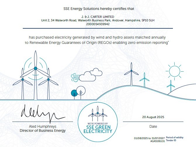We are pleased to share that 30% of our electricity consumption is now generated on-site through our solar panels. The remaining requirement is met entirely from renewable wind and hydro sources supplied by Scottish & Southern Electricity. This reflects our continued commitment to responsible energy use and sustainable operations.